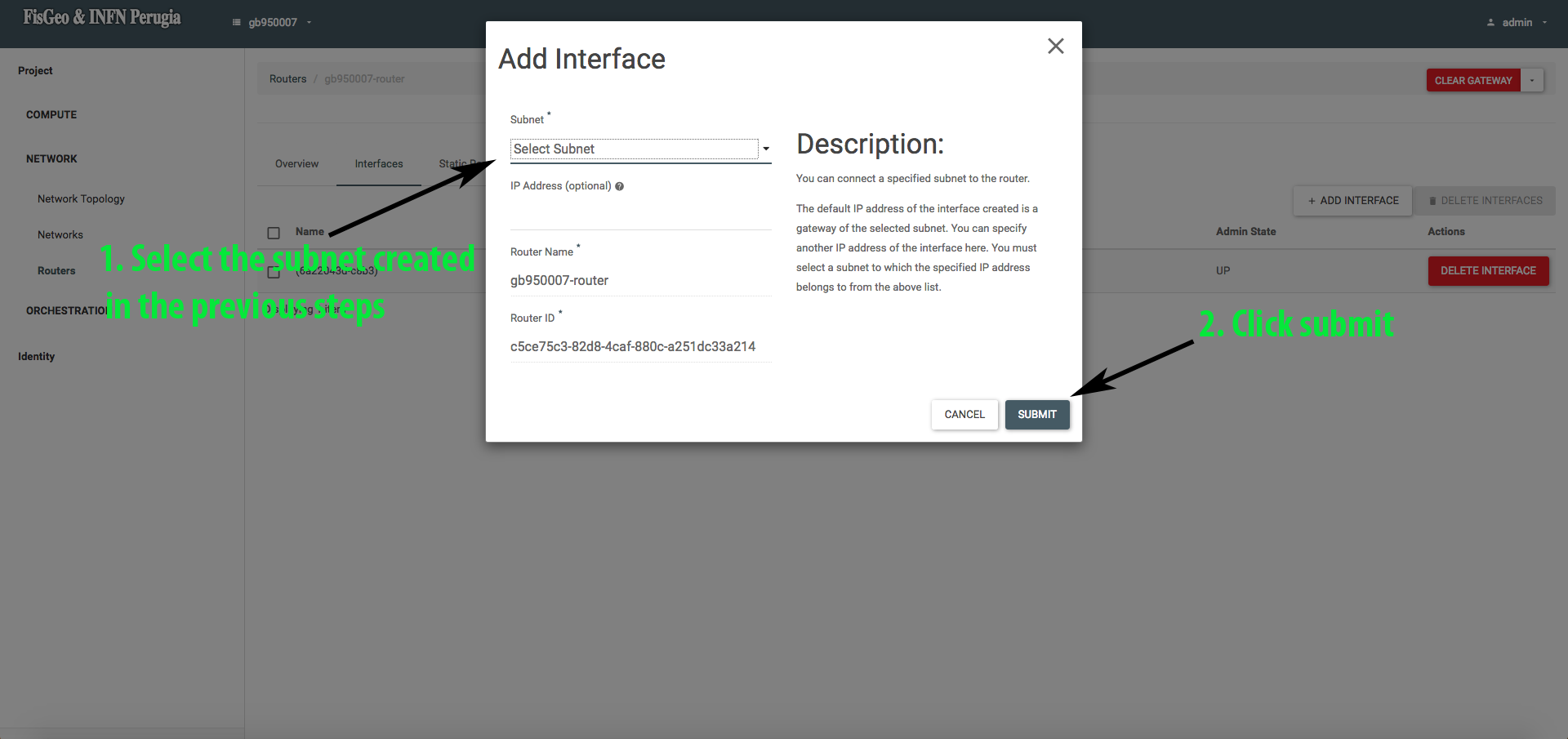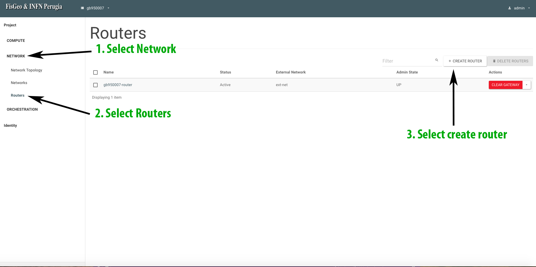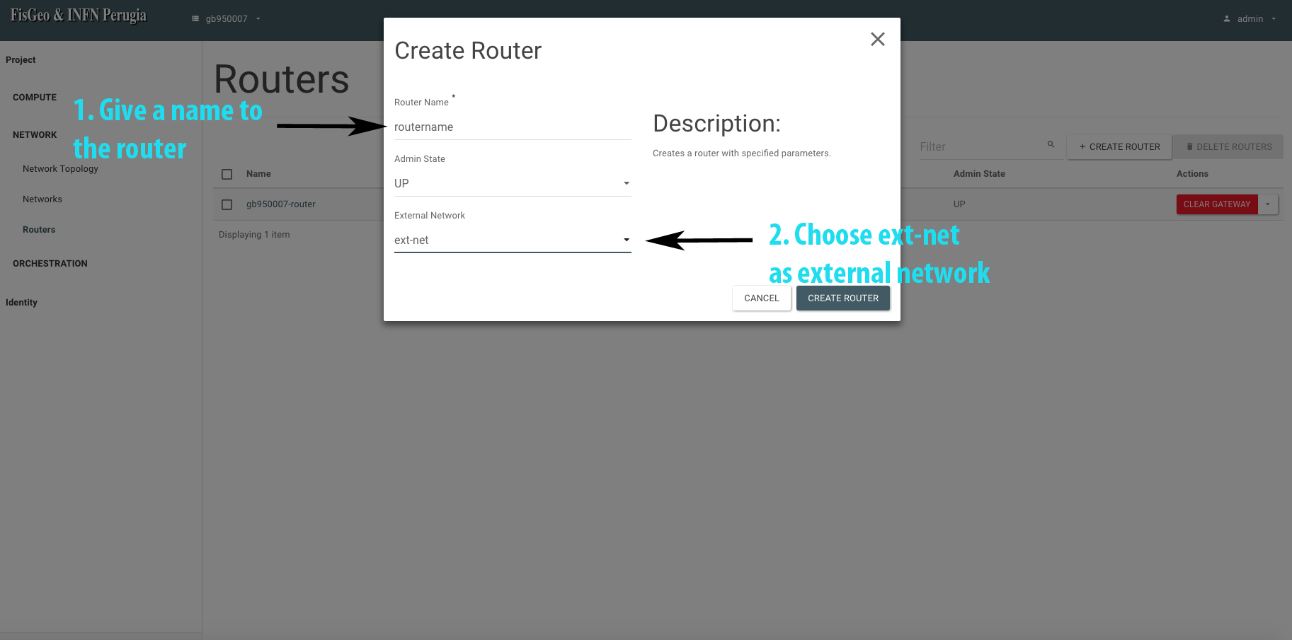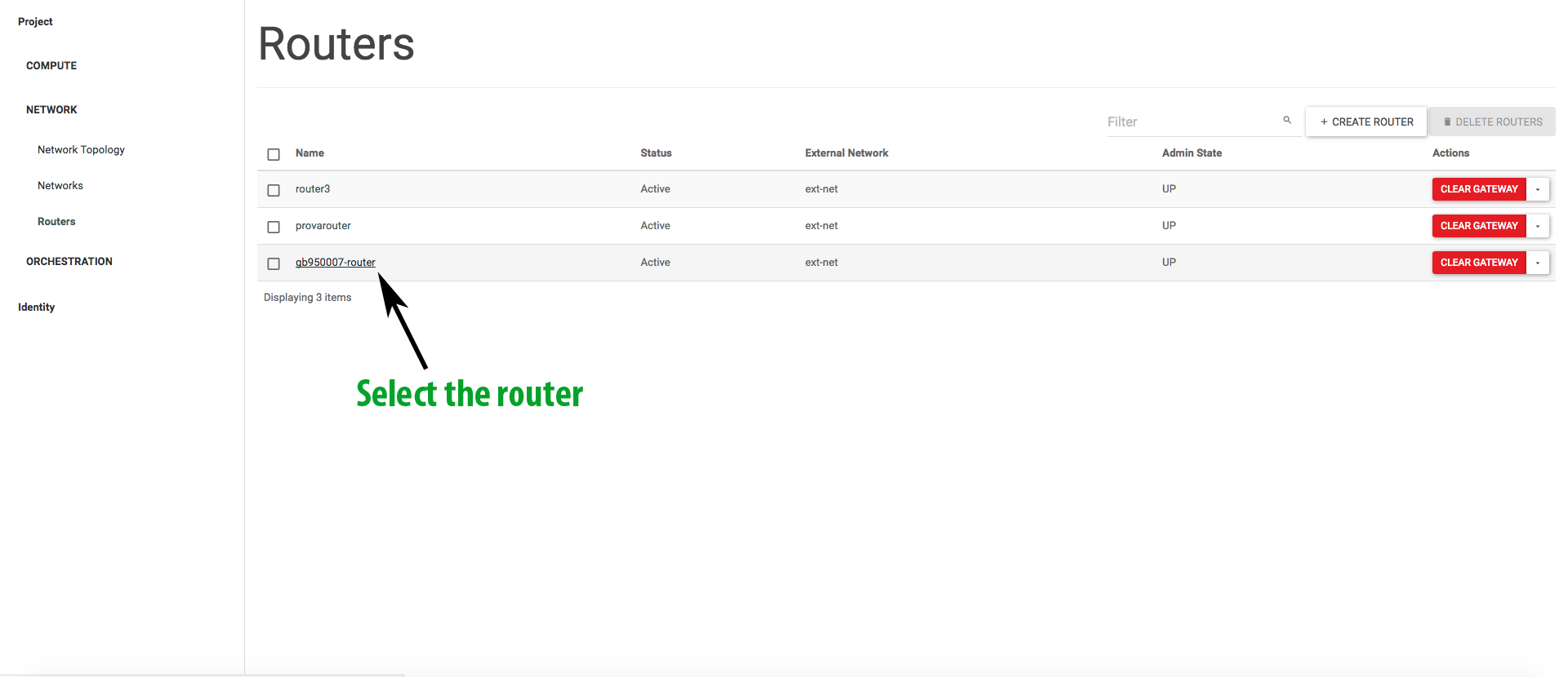 If all went well, we will see our newly created router under the section Network -> Routers