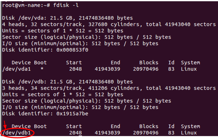 to check the name of the partition (in this example /dev/vdb1).